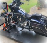 Specialized trucks with hydraulic lifts to transport your motorcycle or scooter the proper way, using soft straps, and secured front wheel chocks.